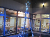 玄関入ってすぐ見える中庭もクリスマスらしくライトアップ!ライトの麓には可愛いツリーがたくさん…お越しの際には是非1度ご覧下さいね。