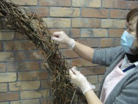 ご近所の方が届けてくれた蔓(つる)を編んで巨大なリース作りです…完成が楽しみですね。