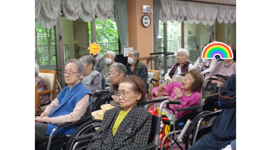 入居者のみなさんも一緒に体を揺らして楽しんでいらっしゃいました♫
