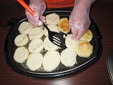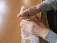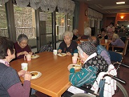 恒例の餅つき大会を今回は趣を変えて、いも餅つき大会を行いました。蒸かしたじゃがいもを袋にいれおひとりづつそれぞれつぶしてもらいその後更に練り味付けし形成、ホットプレートで焼きあげました。香ばしいバターとお醤油の香りがホールに広がり皆さん待ち遠しいご様子!でもあせらず、美味しくいただく前の準備も大事。口腔体操もしっかり行い、「いざ!いただきま~す」皆さん、あっという間にペロリ。おかわりの声も上がり堪能されました。