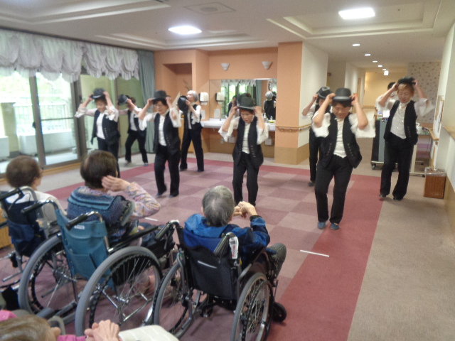 最後に「草津よほほい節」を入居者様と一緒に踊り、