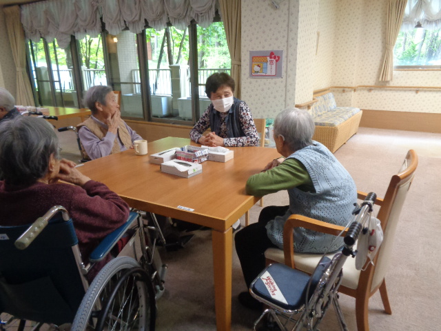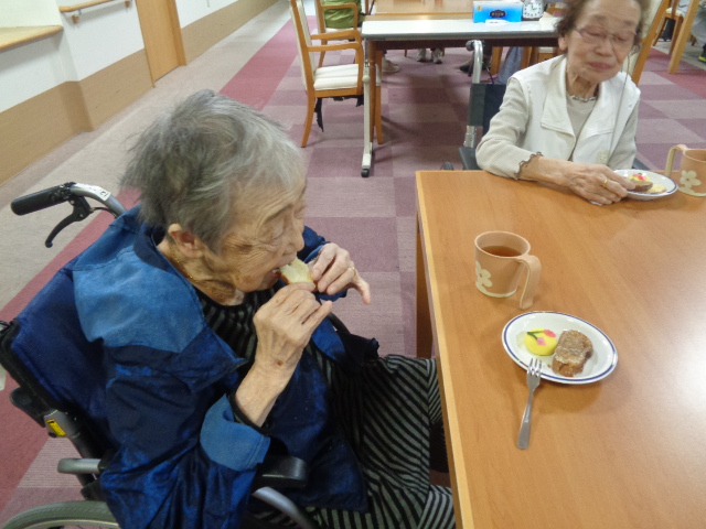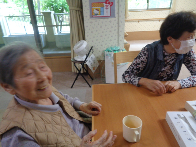 娘様が面会にこられお茶の時間に入居者のみなさんと歓談されていました😄