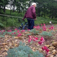 草津運動茶屋公園道の駅ではただいま「コマクサ」が見頃を迎えており、入居者様と出かけてきました。美しい花と、常に砂礫が動き他の植物が生育できないような厳しい環境に生育することから「高山植物の女王」と呼ばれており、草津白根山が群生地として知られています。コマクサの花の名前は、その花の形が馬(駒)の顔に似ていることに由来するのだそうです。コマクサ自体が大変希少な植物ですが、この日はもっと珍しい「シロバナコマクサ」を一つ見つけることができました。