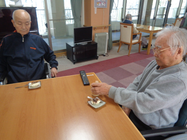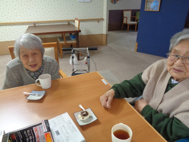 入浴後のひと時はおやつを頂きながらおしゃべりTimeです😄