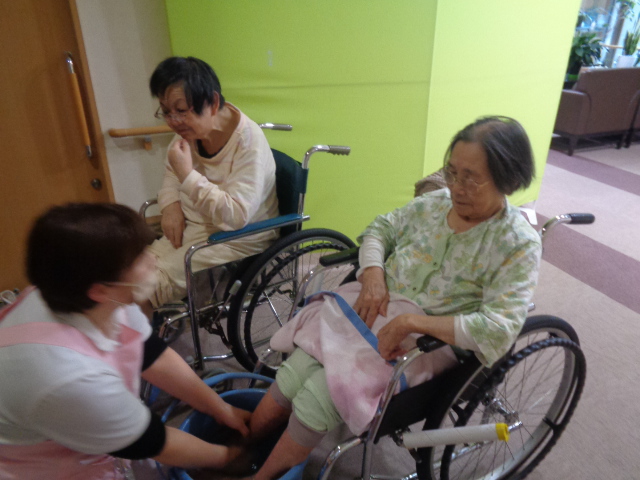 楽しいお話をしながら足湯とスタッフのマッサージで