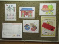 今月は、節分などのぬり絵を飾りました。