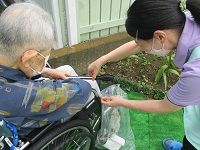 ゴミがない方がいいのに、ゴミを見つけて拾うのが嬉しそうなスタッフと入居者様でした( *´艸`)