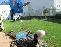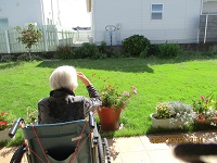 窓の外を眺めていた入居者様を誘って中庭で日光浴をしました。