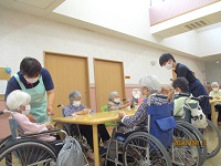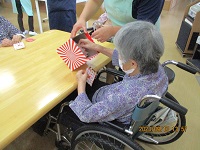「引き当てよう!ビンゴ大会!~花火を楽しもう~」という事で敬老会でビンゴ大会が終わった後は、記念品を施設長から贈らせていただきました。