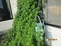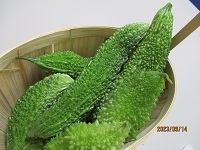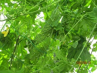 「ゴーヤ採りに行くよ~!」と誘われて畑について行ったら、グリーンカーテンの中にグイグイ入っていくスタッフに頑張ってついて行きました(^▽^;)