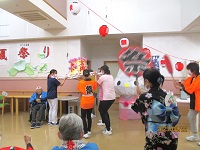 スタッフが担ぐお神輿に「ワッショイ!ワッショイ!」と入居者様が勢いのある掛け声をかけていました。