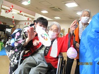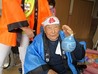 ホールに来られない入居者様のお部屋にもお神輿で訪問しましたよ☆