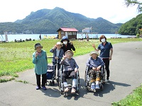 高原に吹く風が気持ちがよくて、入居者様の表情も明るいです(*^^*)