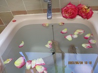 ホールにも飾ったのですが、咲ききってしまったバラはお風呂へ浮かべてバラ風呂に♡
