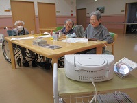 入居者様のラジカセから、入居者様達の胸にグッと響く歌謡曲が流れています。