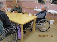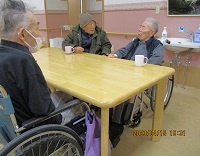 メディス吉岡は女性入居者様の方が多いのですが、この日は男子で集まってお茶を飲んでいらっしゃいました!(^^)!