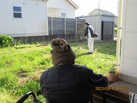 雑草が伸びきってしまった中庭を、なんとスタッフのご主人が草刈りに駆けつけてくださいました!