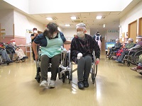 車イス同士を手ぬぐいで連結!
