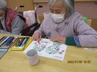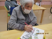 節分を目前に、みんなで鬼のぬり絵をしました。