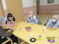 ハロウィンの飾りを作って、飾り付けをましたよ♪