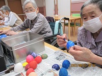 入居者様と一緒に、いいアイデアたっぷりの美術作品を準備しています。
