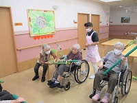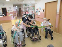 本日もストレッチや歩行訓練などの個別リハ、お食事前にはみんなで体操をしました。