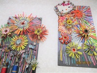 広告を使って作った花火を、黒い台紙に貼り付けていきますよ~☆