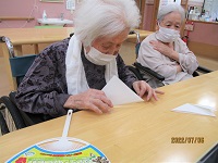 七夕にむけて、入居者様と一緒に飾りを作成していました♪