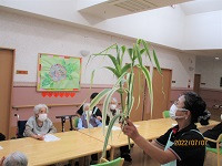 琵琶や柿の葉を用意したのですが、入居者様は葉っぱを見ただけで、すぐに何の葉っぱなのか解っちゃうんです!