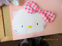 途中までは折り紙でよく作る「兜」の作り方とそっくりでしたが、最後の最後でクルっとひっくり返すと、キティちゃんになりましたよ♪