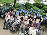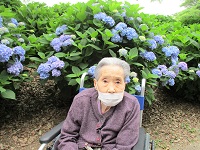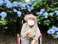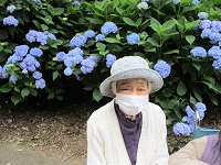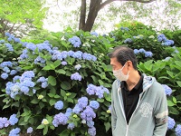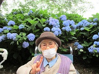 たくさんの青いアジサイの前で記念写真を撮りましたよ(*^^)v