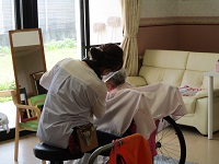 ちょっとしたすき間時間に雑誌のマンガを読んでいる入居者様。