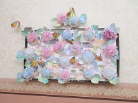 入居者様と一緒に工作したアジサイが完成しました(*^^)v