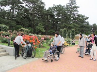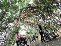 ばら園内はスロープになっていて、車イスでもぐるりと一周まわれます。