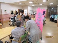 お部屋でやすまれている方、テレビを見ている方、ホールまでいらっしゃいませんか?