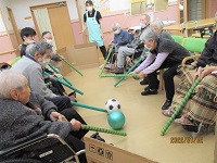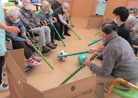 メディス吉岡でも棒サッカーをして入居者様の白熱したプレイで盛りあがっています!
