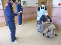 今回は夜間帯に火災が起こったことを想定し、夜勤スタッフが入居者様を避難させます。
