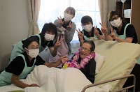 入居者様が自分専用プランターにお花の苗を植え足しているときの会話。