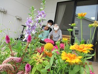 札を読み始めた直後、「日本語で読んでくれる~?」と入居者様達。(笑)