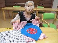 入居者様に裁縫のお手伝いして頂いて作っているこのお祭りの衣装。