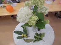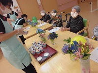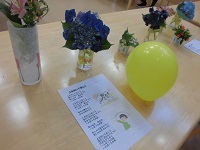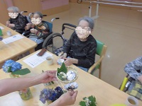 庭に咲いているアジサイをテーブルに飾って、季節の花木の鑑賞レクをしました(*^^)v