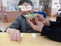 ぷるんぷるんのゼリーを見て「何これ~!」と入居者様もいい笑顔(^v^)