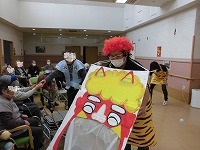 スタッフがお孫さんと作った力作の鬼に向かって豆まきをしました!