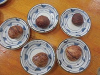 ご家族様がお庭でひろった栗を差し入れてくれたので、さっそく煮ておいしく頂きました♡