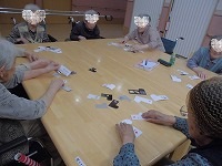 黒い切紙は蜘蛛の巣で、クルーガンではカボチャの目や口を付けました☆