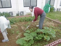 入居者様と一緒にせっせと雑草退治しました。