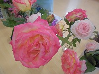 自宅に咲いているバラをたくさん持ってきて飾っています。