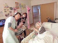 ナースキャップを被ってワゴン販売に回ったら、入居者様から「かわいい!」と好評でした\(^o^)/