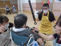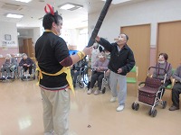 豆まきをしていると1人の入居者様に、