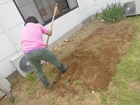 土が固くなっていて、苗を植えられる状態じゃない場所を耕し、いい状態の畑にします\(^o^)/